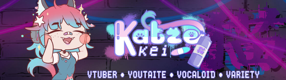 Katze Kei Banner - Featuring the logo seen previously, and featuring commissioned art from @alios_ka.EMOTES/STICKERS